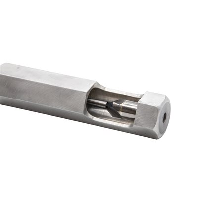 1) Carefully place a hollow drill bit in the holder section of the sharpener and align the drill bit keyway with the notch in the holder.