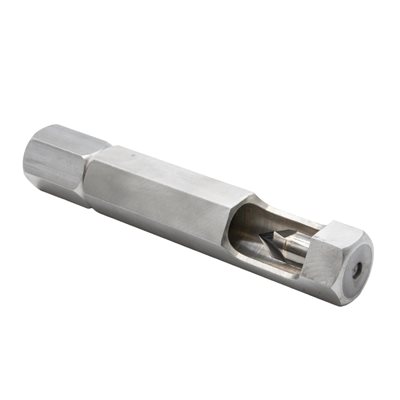 3) Insert the holder section back into the sharpener end, being careful not to bump the drill bit into the sharpening reamer to avoid chipping.