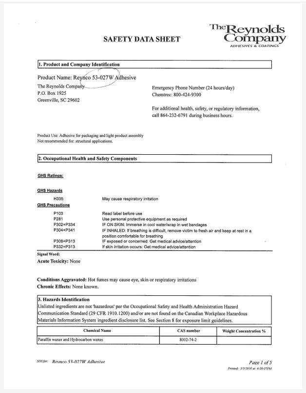 Technical Data Sheet SDS Sheet