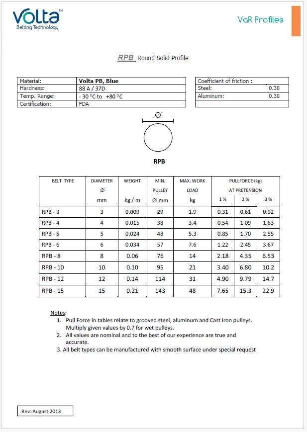 Volta's Round Profile RPB belting for conveying applications