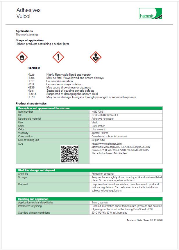 • The use of a Habasit hot-pressing device is recommended. Pressing time is individual for each belt and can be checked up in the Joining Data Sheet.