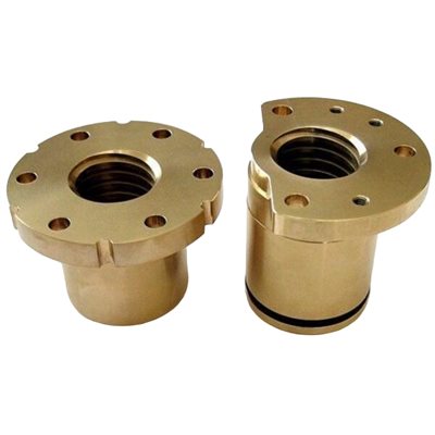 Bronze Lead Screw Spindle Nuts. These metric acme spindle nuts move the backgauge sledge on many of the larger size Polar guillotine paper cutters, such as on some of the Polar 115, Polar 137, and Polar 155 paper cutters. (fixed side nut Polar part number 233573 and spring side nut Polar part number 234824) Original Polar part number 055510 for the set, or ZA3.055510.