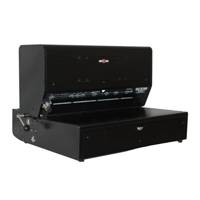 The Rhin-O-Tuff HD7500 24? Horizontal Punch is built for high-capacity, large-format binding projects such as calendars, blueprints, portfolios, and presentation boards. Its horizontal layout and powerful motor deliver smooth, accurate punching for even the widest documents. With fully interchangeable dies, a quick-change die system for fast, tool-free swaps, and fully disengageable pins for custom configurations, the HD7500 offers unmatched versatility. A premium paper stop and scale system ensures precise alignment, making it a reliable choice for demanding, professional applications.